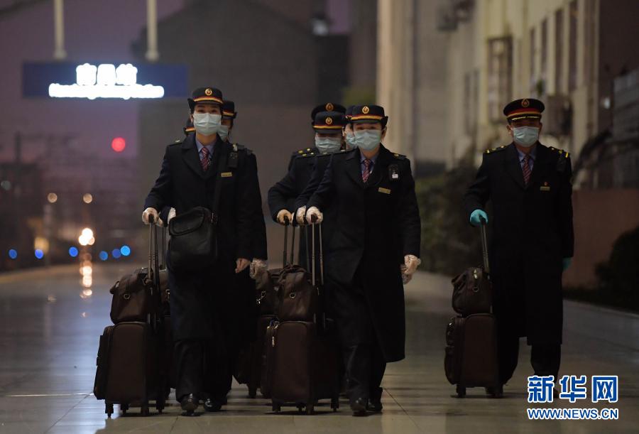 在中国铁路南昌局集团有限公司南昌站,乘务员王阿静(前左)和同事们准备登车工作(1月26日摄)。新华社记者 彭昭之 摄