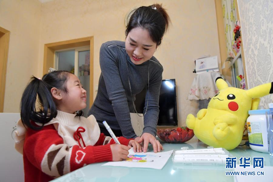 在江西九江的家中,王阿静的大女儿在画全家福(1月25日摄)。新华社记者 彭昭之 摄