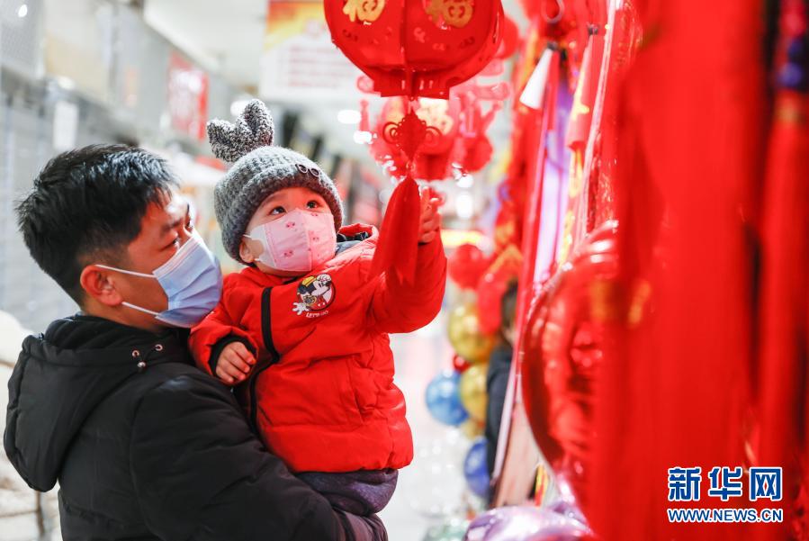 春节临近,银川市各大年货市场进入购销旺季,对联、灯笼和生肖饰品等受到热捧。