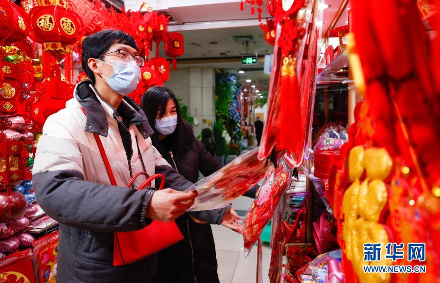 春节临近,银川市各大年货市场进入购销旺季,对联、灯笼和生肖饰品等受到热捧。