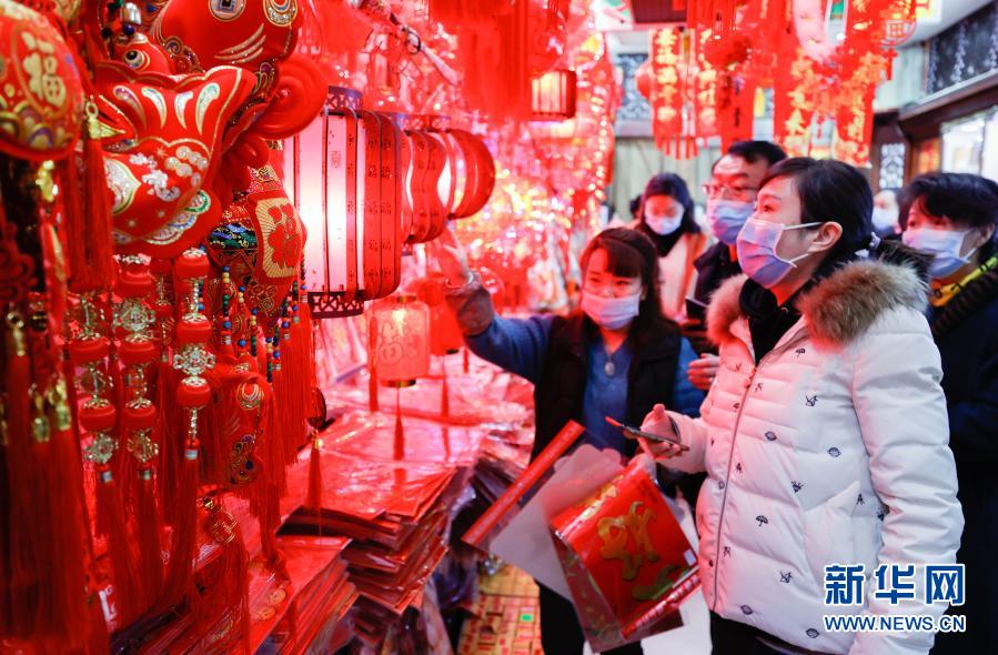 春节临近,银川市各大年货市场进入购销旺季,对联、灯笼和生肖饰品等受到热捧。
