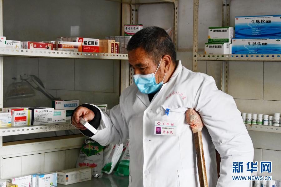 1月29日,在邵原镇称弯村,许奎民为村民配药。新华社发