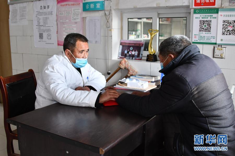 1月29日,在邵原镇称弯村,许奎民为村民看病。新华社发