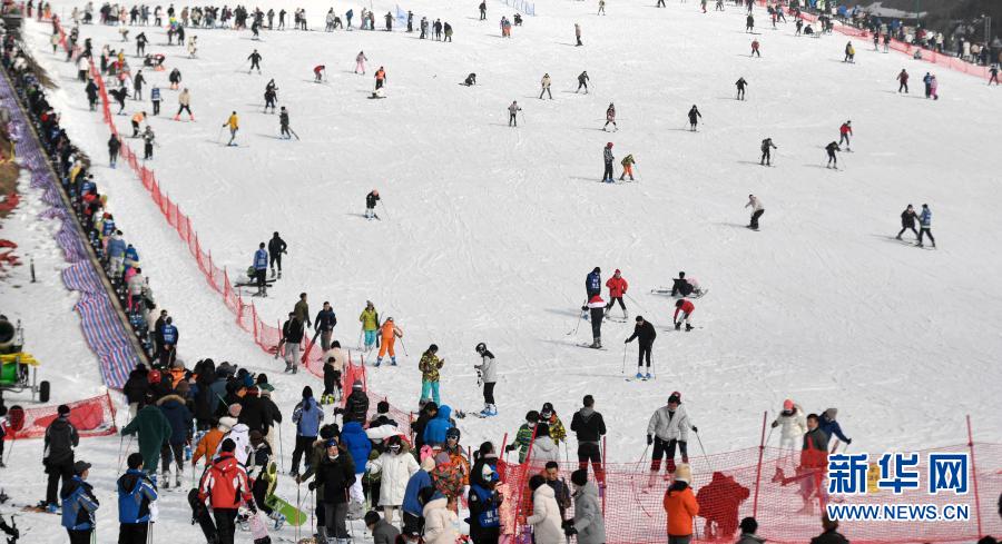 这是2021年1月16日,滑雪爱好者在杭州临安大明山万松岭滑雪场滑雪。新华社记者 黄宗治 摄