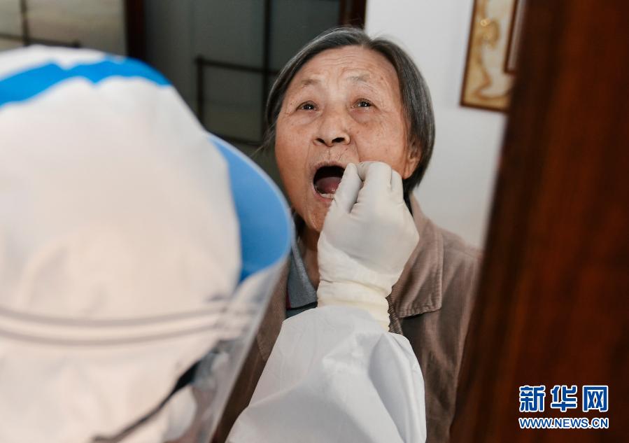 1月31日,在吉林省通化市东昌区一小区,医务人员进行入户核酸采样。
