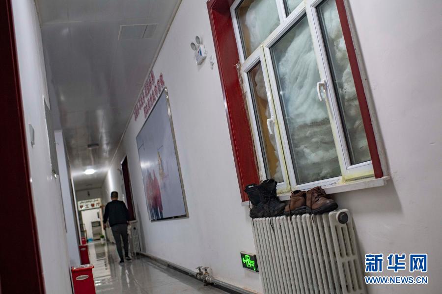 狂风暴雪后,玛依塔斯防风雪抢险基地迎风面的窗户外已被大雪堆满(1月23日摄)。