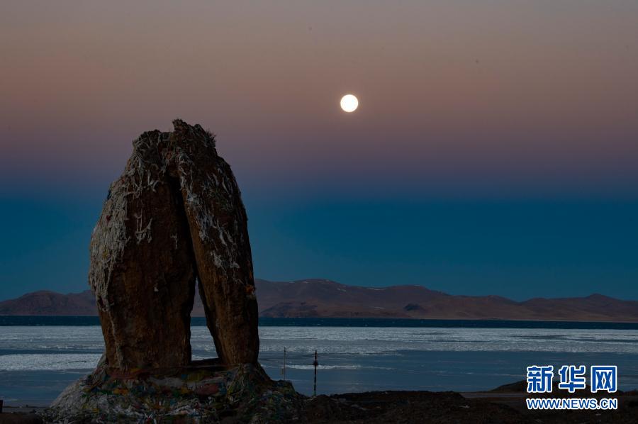 在冬日的藏北高原,素有“天湖”之称的纳木错静静地依偎在雪山的怀抱中。