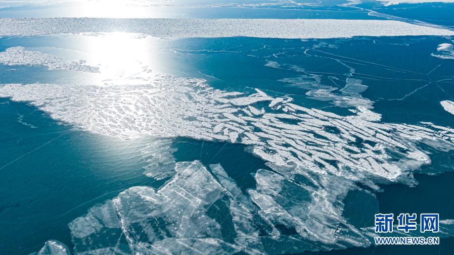 湖面结冰的纳木错(1月29日摄,无人机照片)。