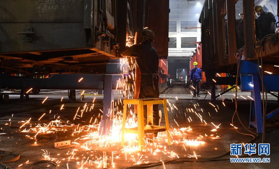 柳州机辆公司工人在车间加班加点抢修货车(1月31日摄)。