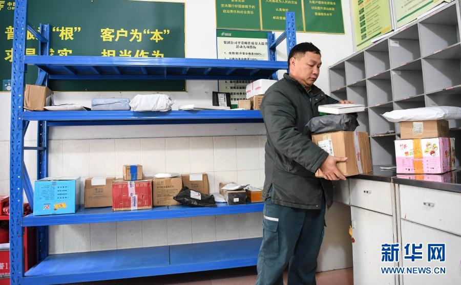 1月29日,在广东阳山秤架瑶族乡邮政支局,黄世华在整理当天的邮件。