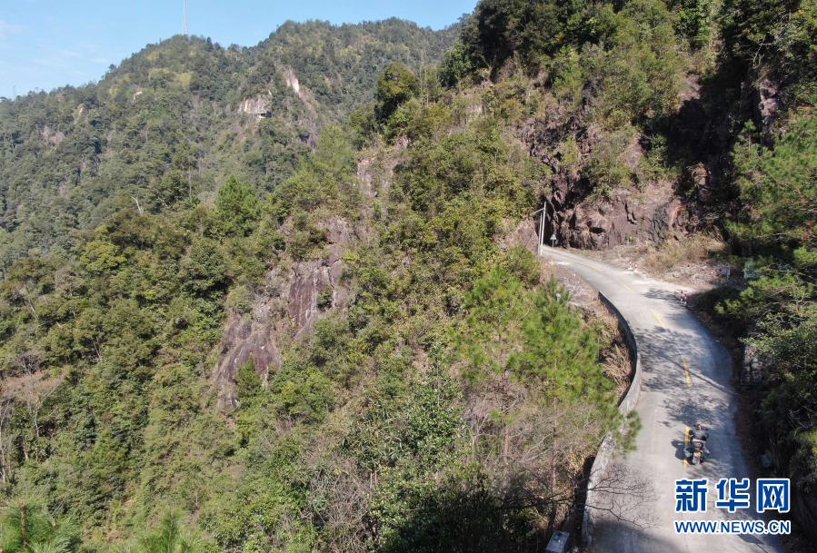 1月29日,在广东阳山秤架瑶族乡,黄世华骑着摩托行驶在山间邮路上(无人机照片)。