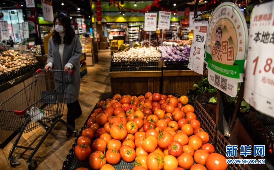 2月1日,市民在贵阳农投惠民生鲜超市新印厂店选购商品。新华社记者 陶亮 摄