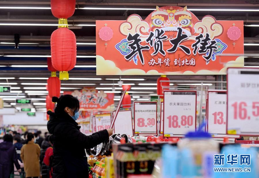 1月31日,石家庄市桥西区一家超市的工作人员在整理货架。新华社记者 王晓 摄