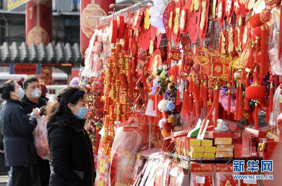 1月27日,市民在和平里一处市场选购春节装饰品。