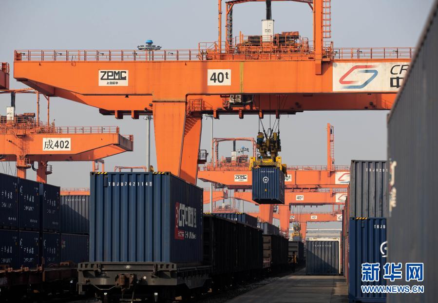 2月1日,中欧班列在成都国际铁路港卸货。