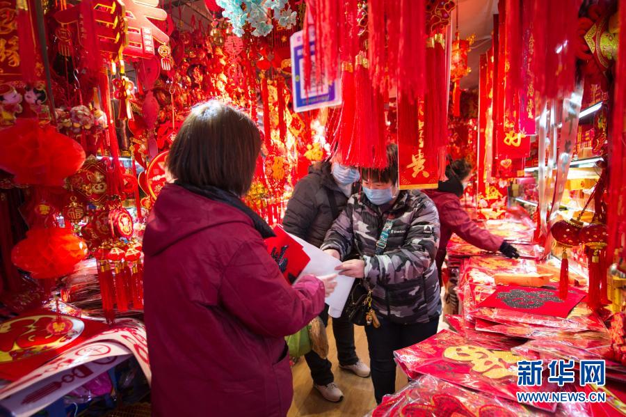 春节临近,不少市民来到西安义乌小商品批发市场购买节庆饰品。