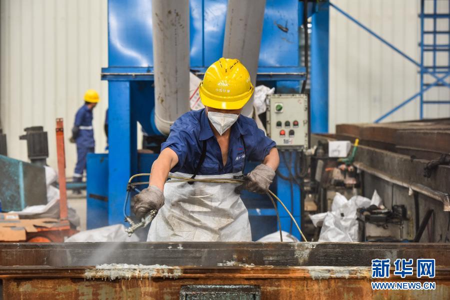 2月2日,工人在中铁建华南建设(广州)建材有限公司混凝土制品厂轨枕生产线清理模具。