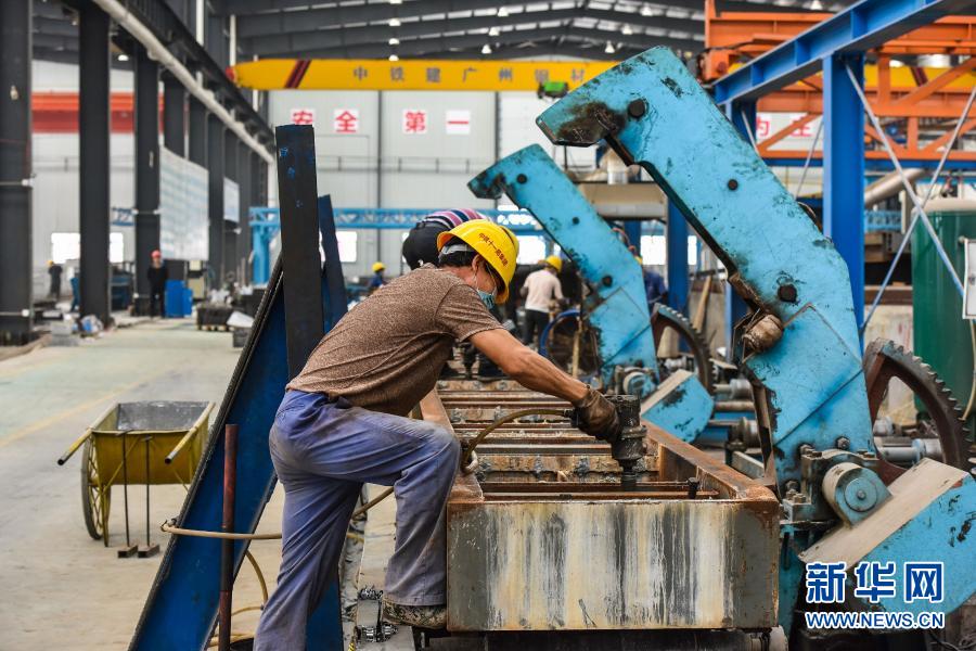 2月2日,工人在中铁建华南建设(广州)建材有限公司混凝土制品厂轨枕生产线进行倒模作业。