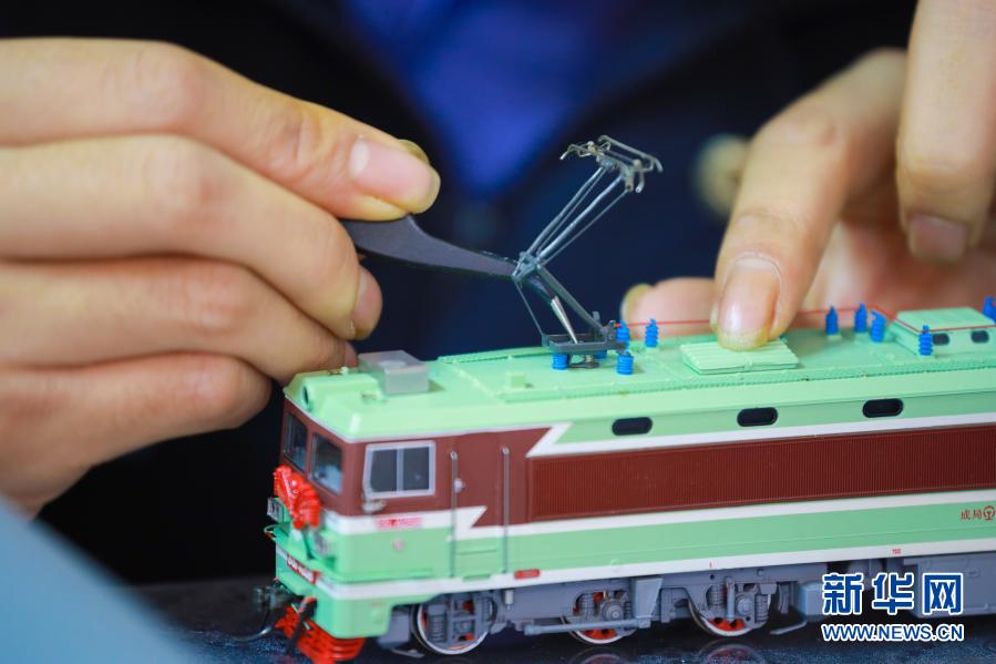 2月2日,张宇琦在家中改造自己收藏的火车模型。新华社记者 刘续摄