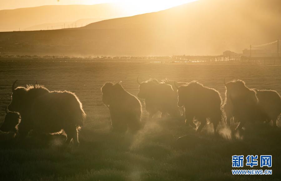 藏北纳木错乡恰嘎村旁高原牧场的牦牛被赶着回家(1月28日摄)。新华社记者 普布扎西 摄