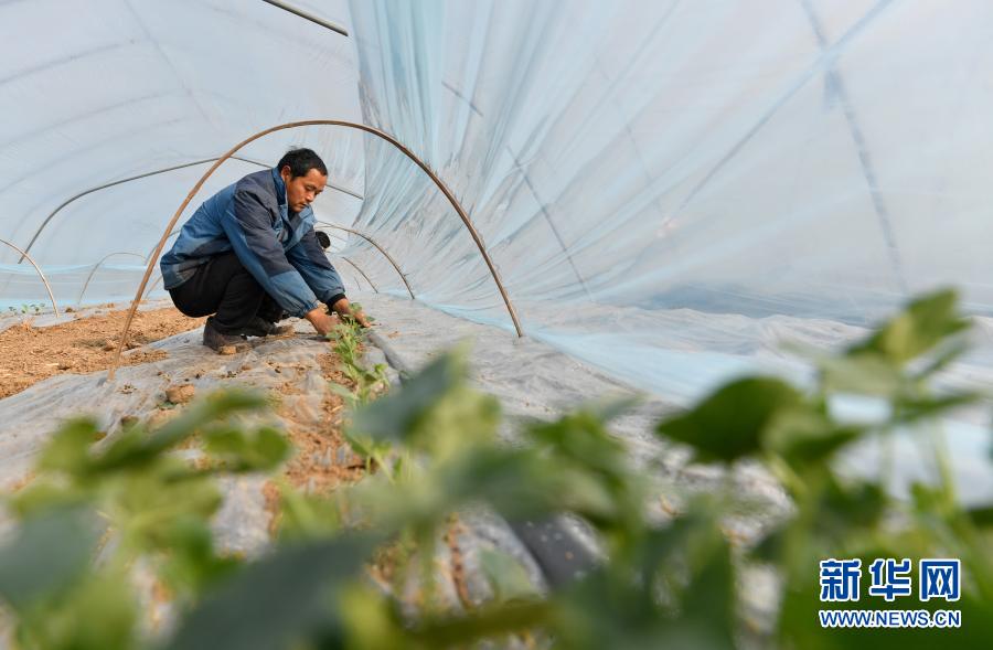 2月2日,河南省夏邑县会亭镇朱瓦房村瓜农在移栽西瓜苗。新华社发(苗育才 摄)