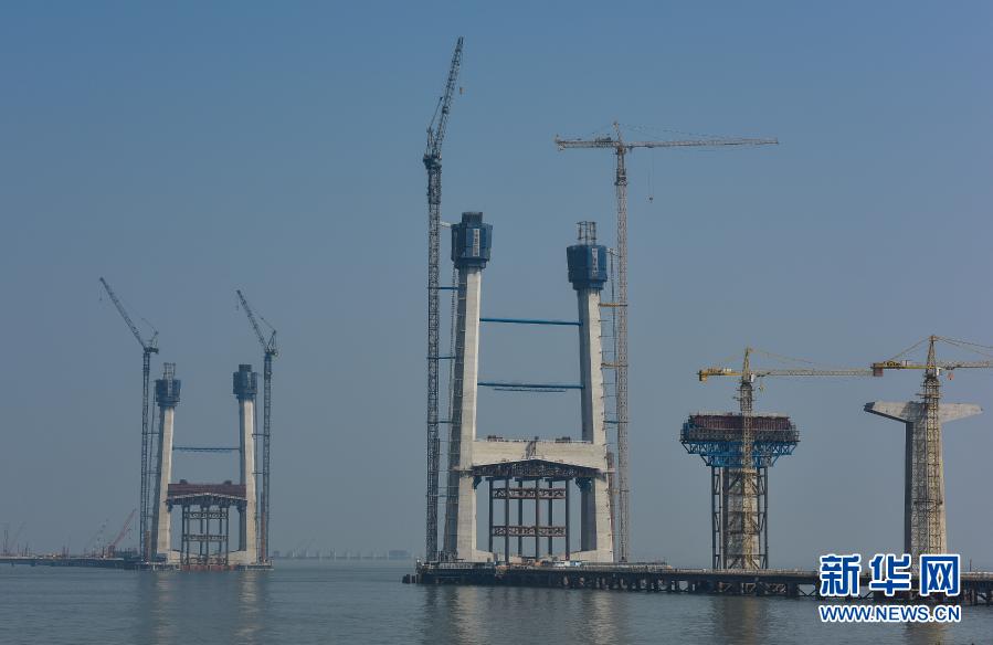 深中通道横门大桥两端的非通航孔桥将使用60米混凝土箱梁(2月2日摄)。新华社记者 刘大伟 摄
