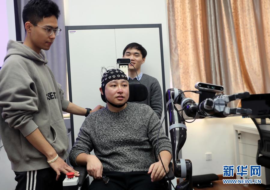 2月2日,在上海交通大学机械与动力工程学院的实验室内,家在辽宁的博士研究生吕博(中)与同学一起研发康复辅助机器人。机械与动力工程学院有约400名学生寒假留校。