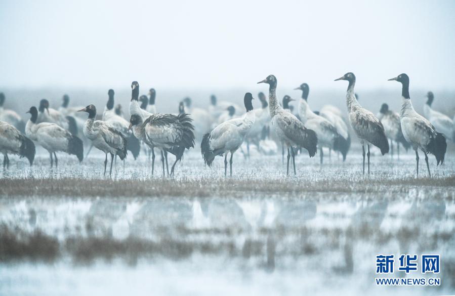 这是2月2日在贵州草海拍摄的黑颈鹤。