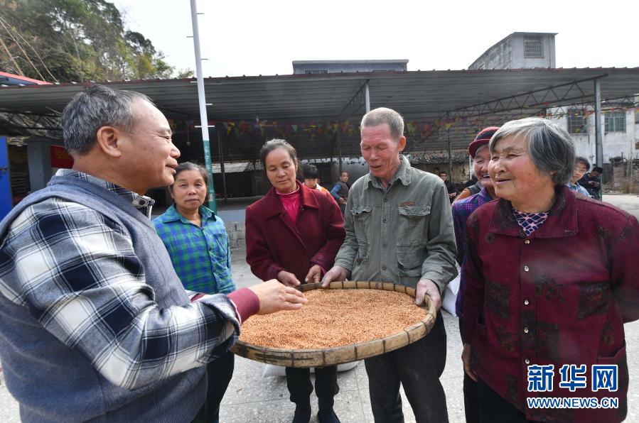 2月2日,在百朋镇小山村,当地农业专家(左一)查看红高粱的品质,并指导村民种植。新华社记者 黄孝邦 摄