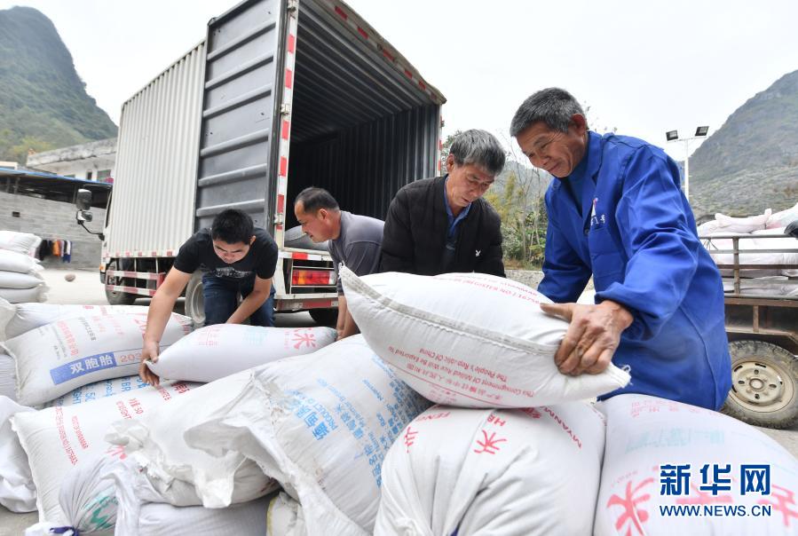 2月2日,在百朋镇小山村,村民将红高粱装车。新华社记者 黄孝邦 摄