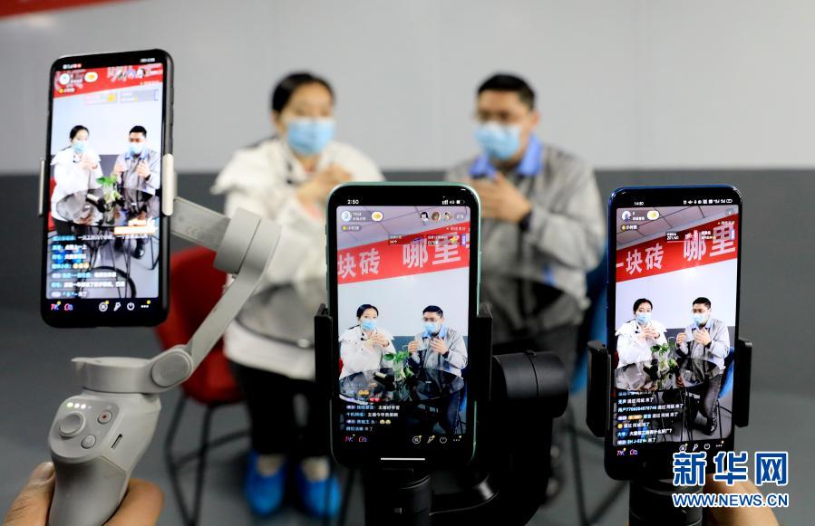 2月2日,企业通过直播平台向求职人员介绍相关情况。新华社发(周松林 摄)