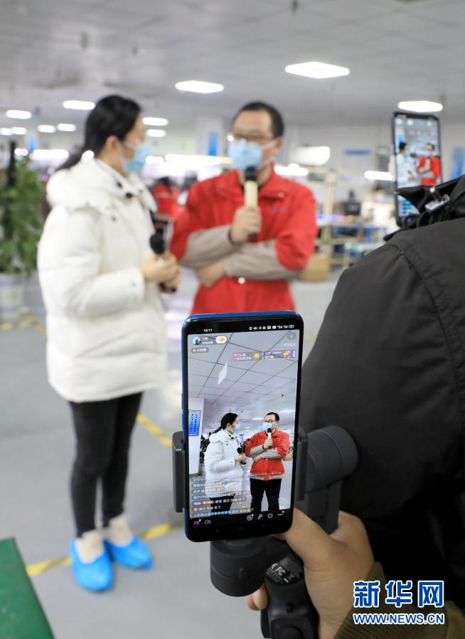 2月2日,网络主播走进招聘单位生产车间进行直播。新华社发(周松林 摄)