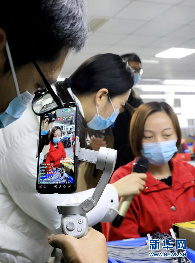 2月2日,网络主播走进招聘单位生产车间进行直播。新华社发(周松林 摄)