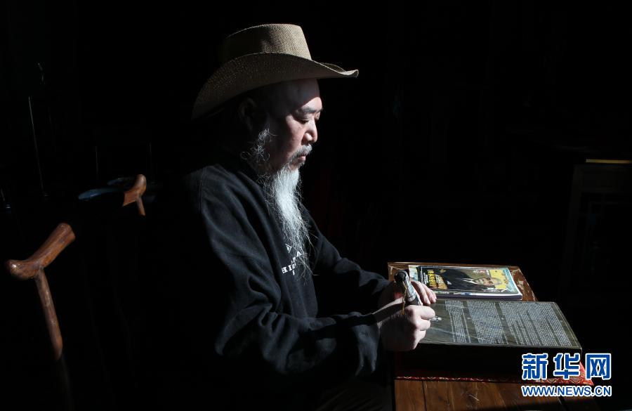 2月2日,申建华在北京欧林乌托邦艺术空间创作《奥林匹克宣言》石刻作品。