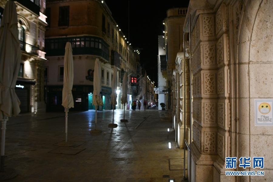 2月1日,在马耳他首都瓦莱塔,往日夜间熙熙攘攘的街道变得冷冷清清,异常安静。