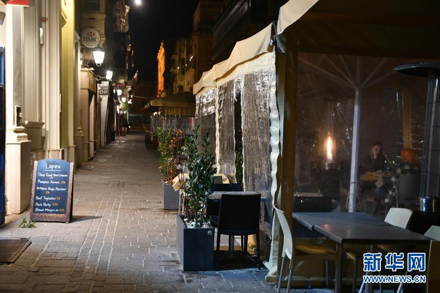 这是2月1日晚在马耳他首都瓦莱塔拍摄的空旷安静的道路。