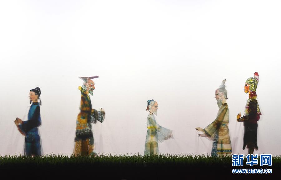 2月3日在中国京西皮影非遗园拍摄的皮影表演。