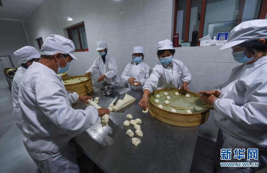 2月3日,仁智村馒头产业园的生产车间内,工人在制作酒酿馒头。