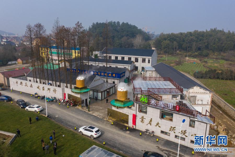 2月3日,空中俯瞰仁智村馒头产业园(无人机照片)。