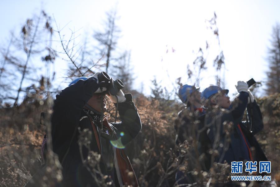 2月2日,国家电网青海检修公司民和运维分部输电三班班长劳朕(左)和班组成员在巡线途中查看线路。新华社记者 吴刚 摄