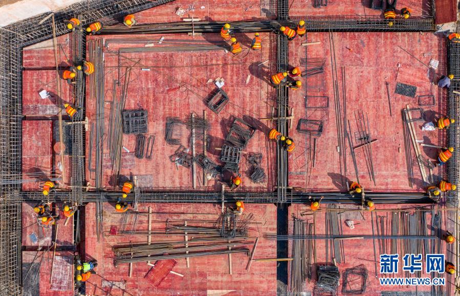 2月3日,中建三局一公司的工程人员在南京金陵中环项目施工现场进行施工建设(无人机照片)。