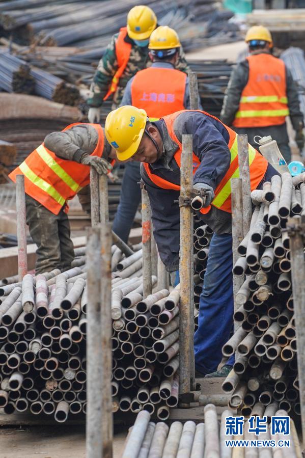 2月3日,中建三局一公司的工程人员在南京金陵中环项目施工现场进行施工建设。
