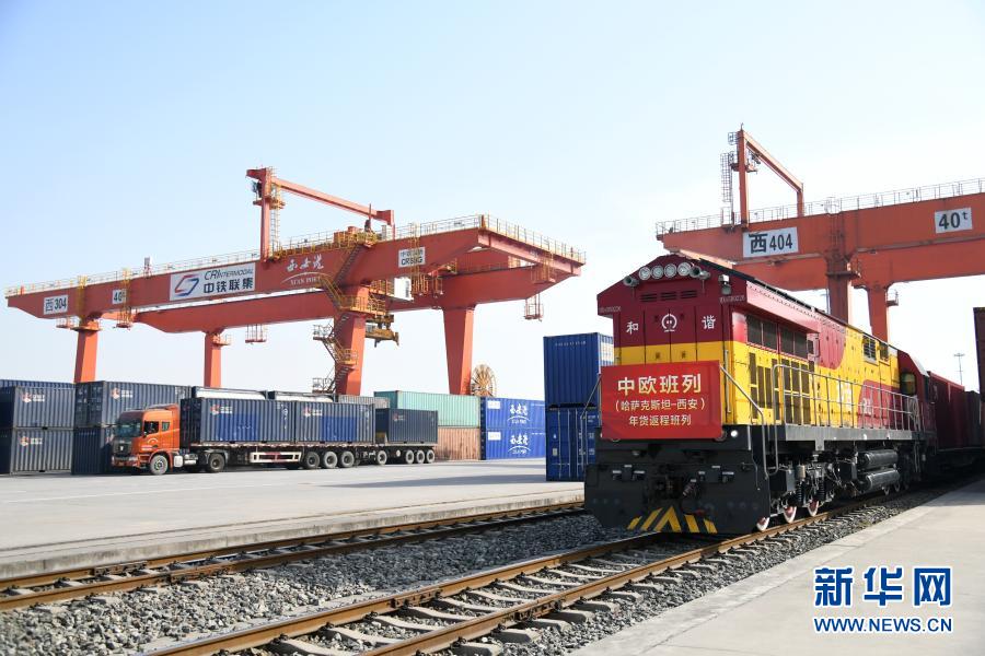 当日,满载着49车“洋年货”的X9020次中欧班列抵达中国铁路西安局集团有限公司新筑车站,这是2021年从哈萨克斯坦开出后抵达西安的首趟中欧班列(西安)年货返程班列。这趟班列装载有面粉、食用油、蜂蜜、糖果等丰富的年货产品。