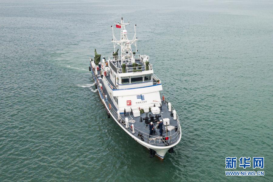 这是2月3日在海口拍摄的海底电缆综合运维船“南电监查01”(无人机照片)。新华社记者 蒲晓旭 摄