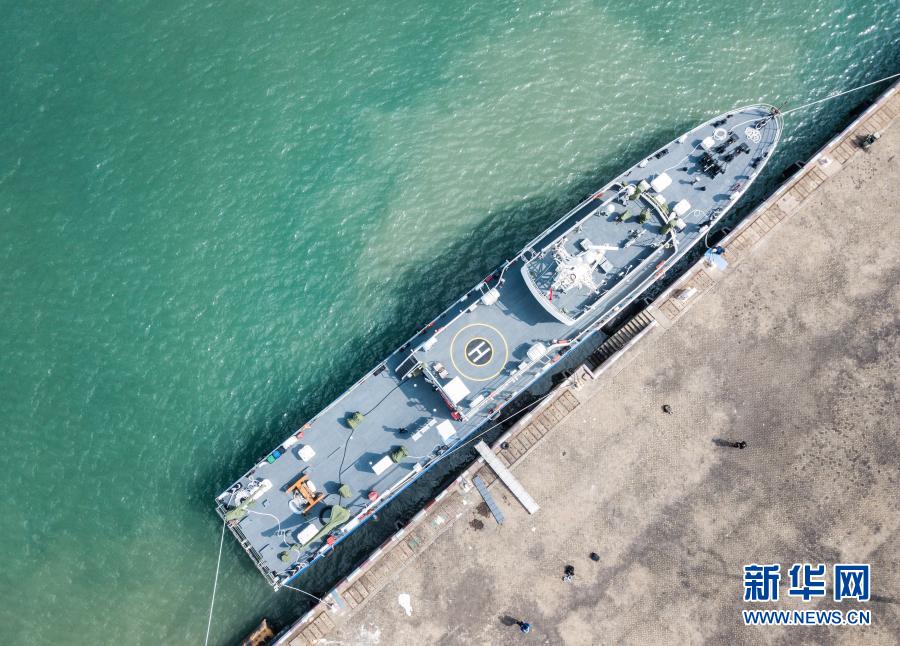 这是2月3日拍摄的停泊在海口秀英港的海底电缆综合运维船“南电监查01”(无人机照片)。新华社记者 蒲晓旭 摄