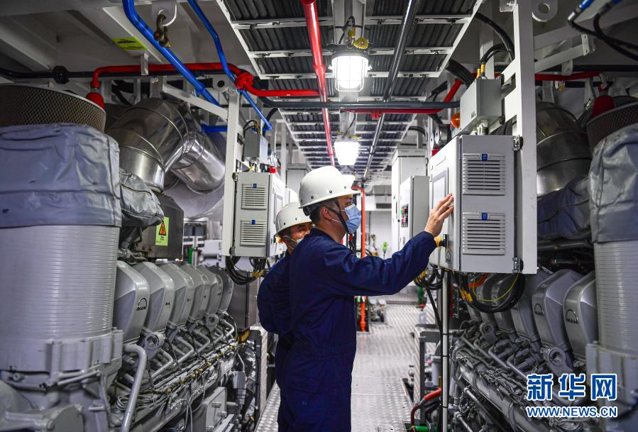 2月3日,工作人员在海底电缆综合运维船“南电监查01”船舱内作业。新华社记者 蒲晓旭 摄