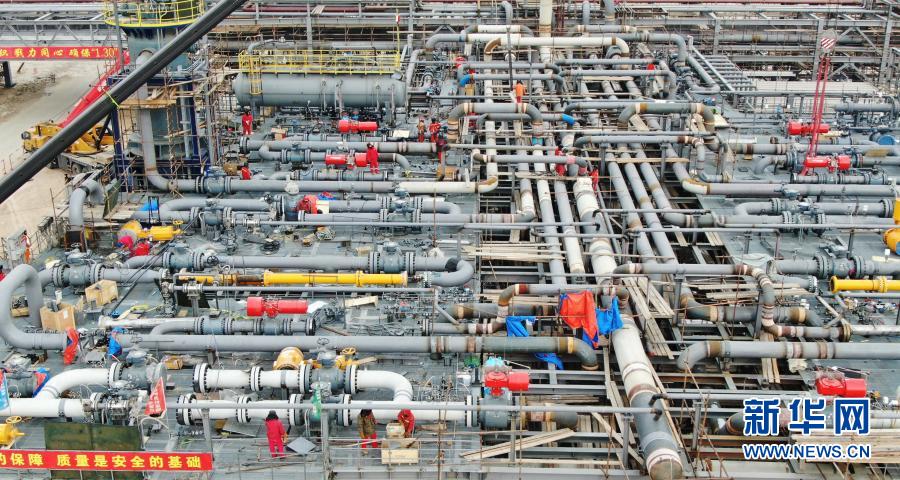 2月3日拍摄的辽河油田双台子储气库群一期工程施工现场(无人机照片)。新华社记者 杨青 摄