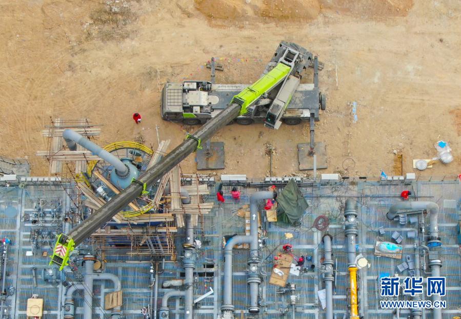 2月3日拍摄的辽河油田双台子储气库群一期工程施工现场(无人机照片)。新华社记者 杨青 摄