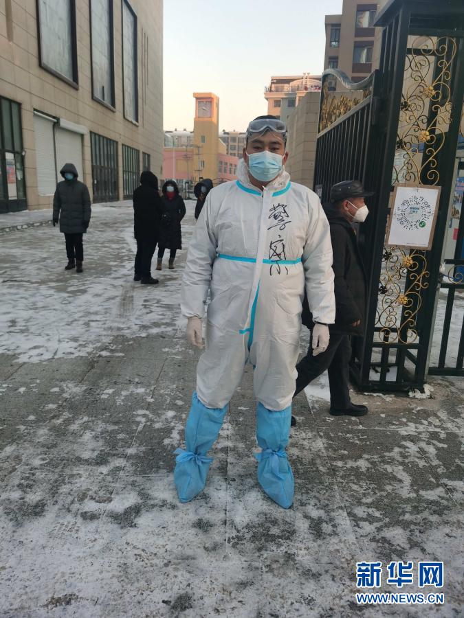 1月23日,呼兰区第二次全民核酸检测准备阶段,史广雨到达执勤点位,准备对接医护人员。