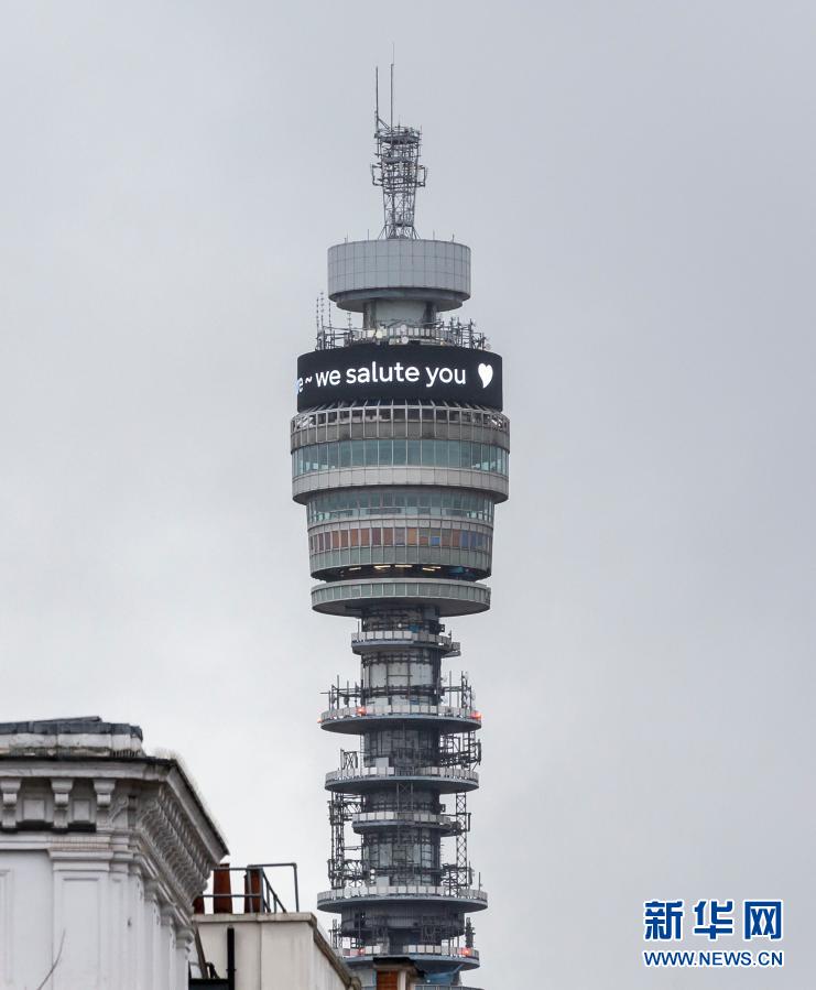 2月3日,英国伦敦的英国电信公司塔顶显示向汤姆·穆尔致敬的内容。